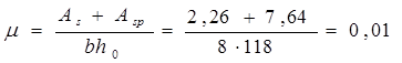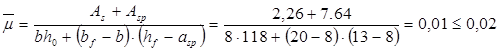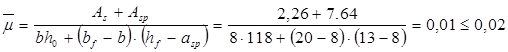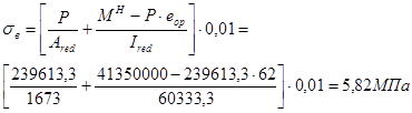 Ired =3378662,2 (см4); Wred =48266,6 (см3); Wpl =72400 (см3); As =2,26 (см2); Asp= 7,64 (см2); A’s =4,52 (см2);