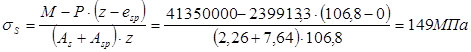 Напряжения в растянутой арматуре ф-ла (147), [1]