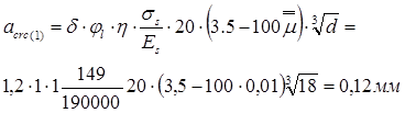 Вычисляем ширину раскрытия трещин: [1, п.4.14]