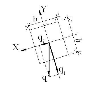 Максимальный изгибающий момент будет в среднем сечении гнутой части рамы, которое является биссектрисой этого угла, тогда получим