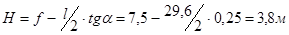 Высота стойки от верха фундамента до точки пересечения касательных по осям стойки и ригеля: