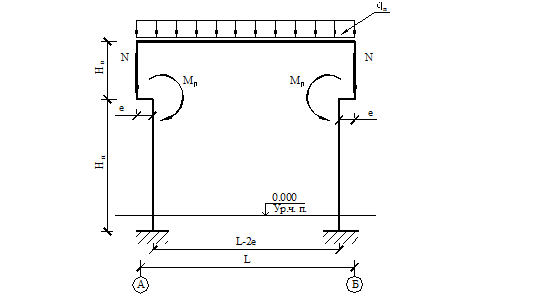 Расчетная схема поперечной рамы здания на постоянную нагрузку представлена на рисунке 2.1.