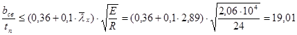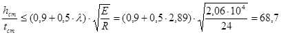 Из условия устойчивости верхней части колонны из плоскости действия момента ширина полки: