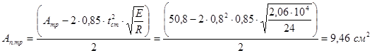 Расчетная площадь сечения с учетом только устойчивой части стенки: