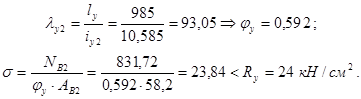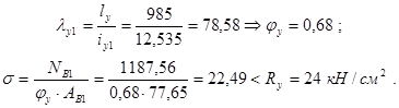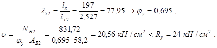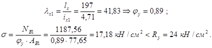 , разделив нижнюю часть колонны на целое число панелей (5 шт). Проверяем устойчивость ветвей в плоскости рамы (относительно осей