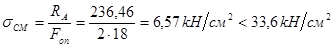 Торцевой лист принимаем толщиной 20 мм и шириной 180 мм, из условия размещения болтов. Напряжение смятия у торца: