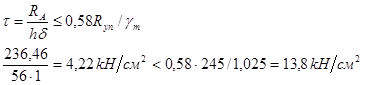 Rwf=20 кН/см2, по табл. 56 [5], Rwz=0,45∙Run=0,45∙37=16,7 кН/см2.