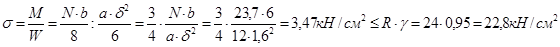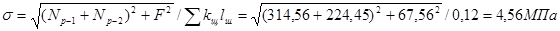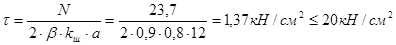 Σkш·lш= 0,08· (2·0,25+0,65)=0,12м2 – суммарная площадь швов, крепящих накладку к поясам