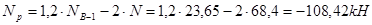 F – сосредоточенная узловая нагрузка (см. табл.5.1) F=29,16+38,4=67,56кН