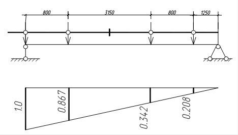 Для определения максимальной поперечной силы загружаем линию влияния поперечной силы на опоре рис. 5.3.