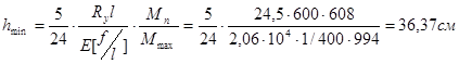 где: [f/l] – относительный прогиб по табл.19 [5] равен 1/400