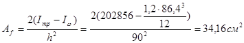 момент инерции поясов выражают через площади поясных листов, пренебрегая при этом собственным моментом инерции поясов относительно горизонтальной оси: