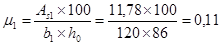Расчет производится по опасному сечению, по которому определилось расчетное сечение арматуры (сеч. 1-1).