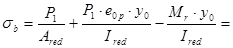 Определение нормальных напряжений в бетоне от внешней нагрузки и усилия предварительного обжатия на уровне центра тяжести приведенного сечения (У=0): в сечении 2-2