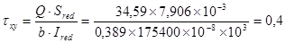 Определение касательных напряжений в бетоне от внешней нагрузки: