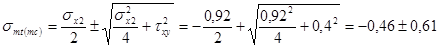 Значение главных напряжений (растягивающих smt и сжимающих smc) в бетоне: в сечении 2-2