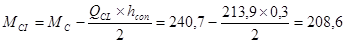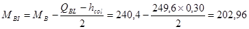 Определяем изгибающий момент у грани колонны со стороны второго пролета (QBL > QBR):