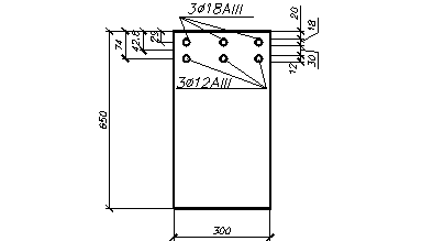 Принимаем 3Æ18A-III в верхней части, c As =7.63 см2, и 3Æ12 A-III,