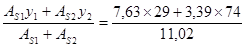 у1=20+18/2=29 см, у2=20+18+30+12/2=74 см [3, п.5.12];