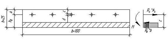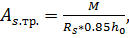 Воспользовавшись условием прочности плиты при изгибе (рисунок 4.3) и приняв плечо внутренней пары сил Z=0,85*h0, определяем требуемую площадь сечения арматуры по формуле