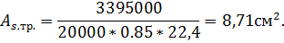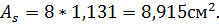Принимаем число арматурных стержней 8штук,