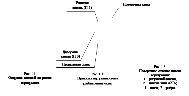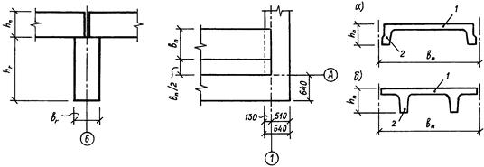 Выбор типа панелей производится на основе экономических и эксплуатационных критериев. В курсовой работе предлагается выбрать тип панели по собственному усмотрению и использовать рёбристые панели (рис.1.3, а), или панели типа "2Т" (рис.1.3, б). В данном примере расчёта применяются рёбристые панели перекрытия. Рекомендуемые размеры сечения и нагрузка от собственного веса для различных типов панелей представлены в Приложении 1.