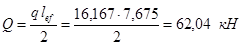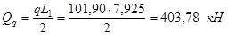 Qq - поперечная сила от действия равномерно распределённой нагрузки: