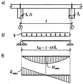Значения поперечных сил на опорах определяются методами строительной механики (рис.2.2, в):