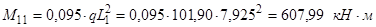 M22 = 0,055 qL2 = 0,055×101,90 × (7,8) 2 = 340,98 кН×м, |