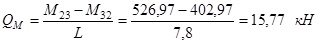 Q23 = 397,41 + 15,77 = 413,18 кН,Q32= 397,41 - 15,77 = 381,64 кН.