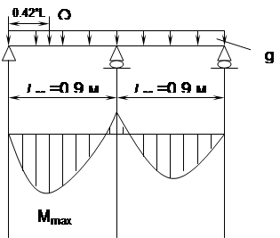 Мmax = 0.125(q+ P) * Lnр² = 0.125 * (36.5+ 320) * 0.9² = 36.09 кгс*м