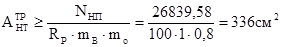 2.При максимальной степени ослабления сечения н.п. врубкой на глубину hвр=1/4hнп (hнп – высота сеченя н.п.) полная площадь поперечного сечения