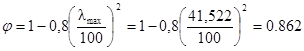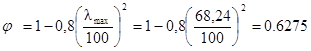 5. Так как максимальная гибкость не превышает 70, коэффициент продольного изгиба вычисляем по формуле