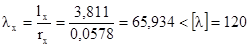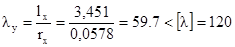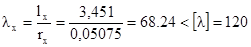 3. Расчетные длины опорного раскоса в плоскости фермы принимается равной расстоянию между центрами соединяемых им узлов фермы. В нашем примере lx=ly=3,451 м. Радиусы инерции rx =0,289*0,175=0,05075 м.