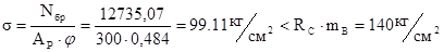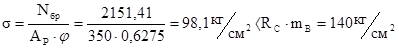 где Rc=140 кг/см2 (для изготовления поясов фермы применяется древесина II сорта).