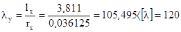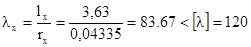 3. . Расчетные длины раскоса в плоскости фермы принимается равной расстоянию между центрами соединяемых им узлов фермы. В нашем примере lx=ly=3,63 м. Радиусы инерции