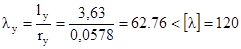 где [l]=120 – предельная гибкость для сжатого верхнего пояса и опорного раскоса (для промежуточных раскосов [l]=150). Так как lmax < 70, определяем j по формуле