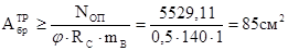 Задаемся значением коэффициента продольного изгиба j в пределах от 0,5 до 0,7, например j= 0,5, и определяем требуемое значение площади поперечного сечения раскоса