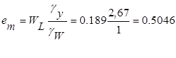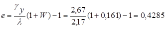 П=(em-e)/(1+e)=(0,5046-0,4285)/(1+0,4285)=0,0532.