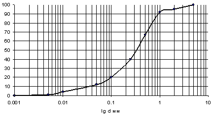 ж) коэффициент неоднородности грунта U=d60/d10. Где d60 и d10 – диаметр частиц, которых в грунте содержится 60% и 10% соответственно.