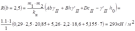 Условие прочности удовлетворено 293 кН/м2 < 281.36 кН/м2. Принимаем ширину подошвы 2,5 м.