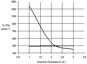 Как видно из графика, оптимальным значением , является точка пересечения графиков, которой соответствует значение b = 2,3 м.