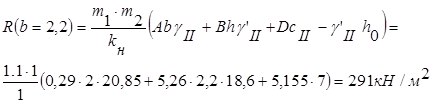 На h0 Pос = 281,36 кН/м2 – (18,6 кН/м3 х2м – 21,7 кН/м3 х 0,2м) = 239,82 кН/м2