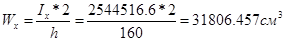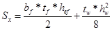 Для скомпонованного сечения вычисляются его точные характеристики: A, Ix, Wx, Sx (1)