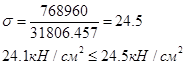 Устойчивость главной балки обеспечена за счет того, что верхний сжатый пояс раскреплен монолитным железобетонным настилом. Проверка на жесткость с учетом [f/l]=1/300: