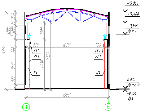 Компоновка поперечной рамы представлена на рисунке поперечного разреза здания (рисунок 2).