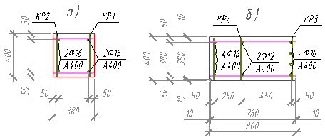 Рисунок 7. Армирование колонны: а) надкрановая часть; б) подкрановая часть