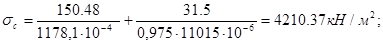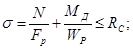 Напряжение, возникающее на опоре от действия полной осевой нагрузки и изгибающего момента: