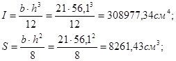 Принимаем сечение размерами 21´56,1 см. Используем сосновые доски 2 го сорта толщиной 3,3 см (после острожки), ширина доски 23 (21 – после острожки). Древесина пропитана антипиренами.