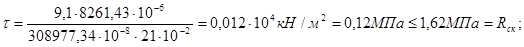 Rск=1,5×mн×ma=1,5×1,2×0,9=1,62 Мпа – расчетное сопротивление скалыванию вдоль волокон при изгибе клееных сосновых досок 2-го сорта.